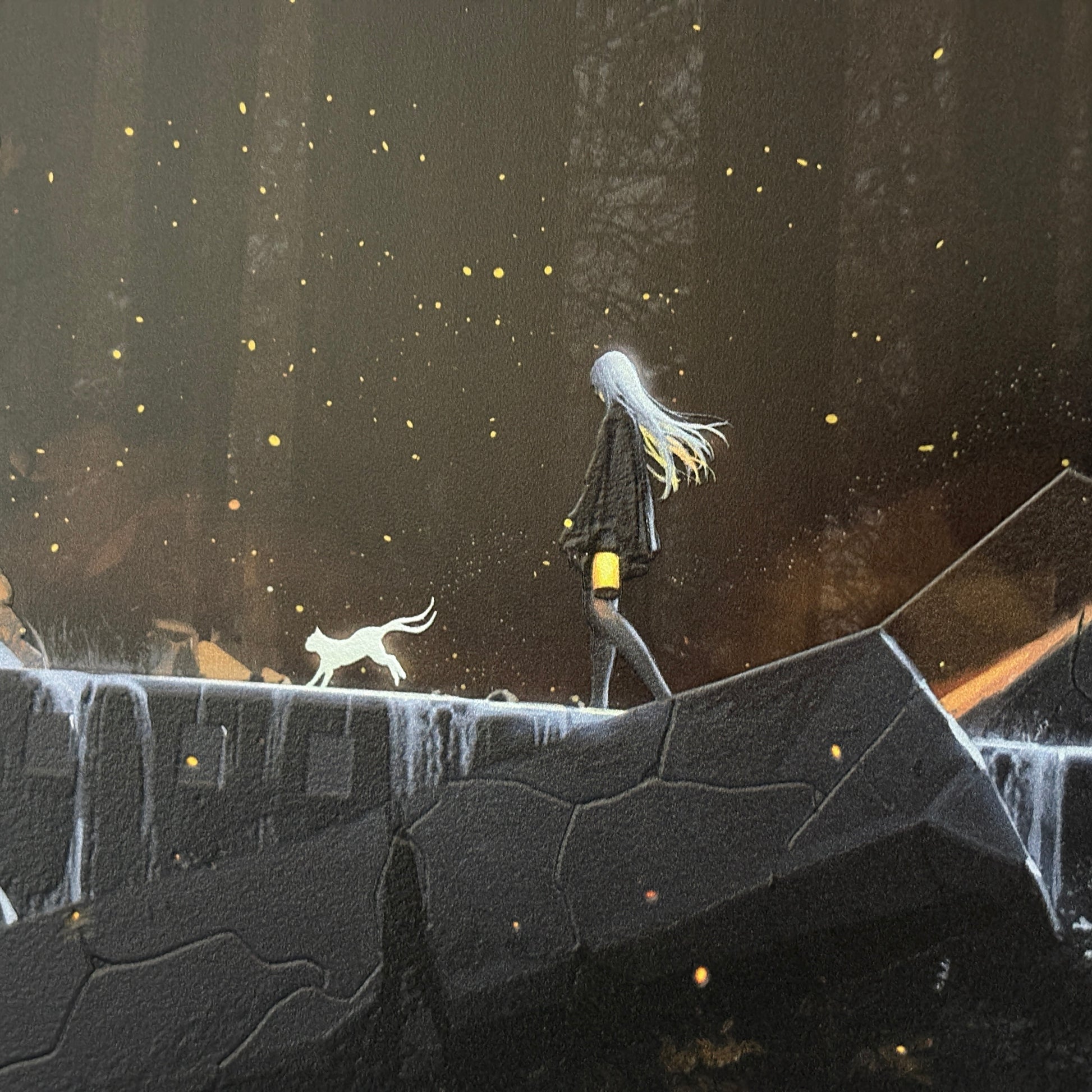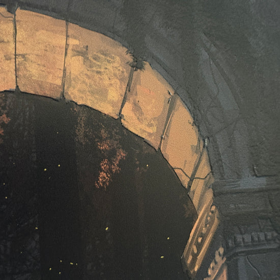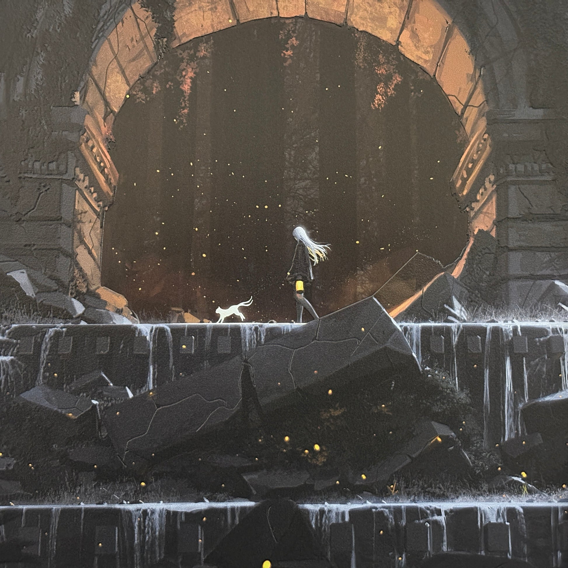 The archway is such an ubiquitous design that we see it so often in ancient ruins and even modern architecture. Old stone archways however tend to evoke a rather unique sense of purpose and wonder, telling us quite a bit about the civilization which built it. Given this intriguing property, the archway became the base concept and composition idea I had for this piece. For the character subject, I opted to create a design that complemented this sense of mystery and wonder. The white haired girl and cat traveling through a set of ruins made for a fantastical mood, while the color palette blended in well with the moonlight. To complement the cool tones of the night, a field of fireflies beneath the archway illuminates it from below with a warm glow. The movement of the characters also adds a simple but important dimension to the composition, to give the viewers a sense of purpose and imply the passage of time.