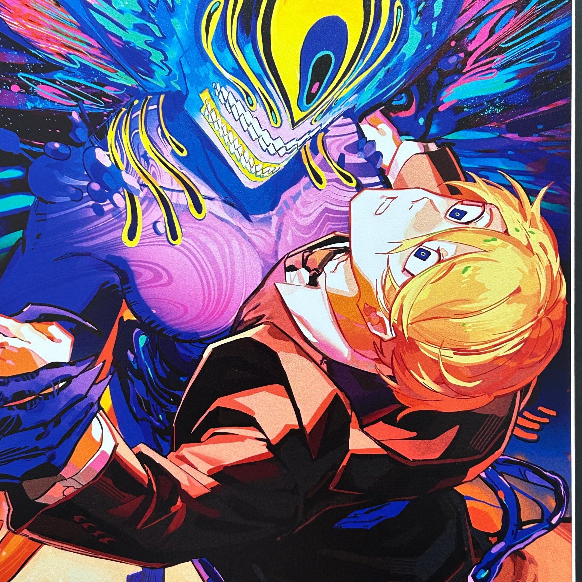 神秘的なエルドリッチの生物「Lumos」と対峙する男。この作品では、未知のものに対する恐怖と、魅惑的な踊りを楽しむ感情の相反する混ざり合いを描きたかったのです。その超現実的な雰囲気がキャラクターに不安感をもたらし、彼は自分に迫るこの生物が危害を加えるのかどうかわからない状態です。