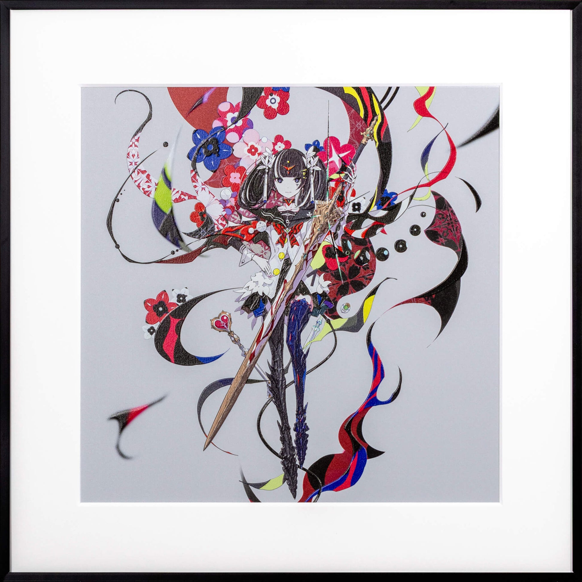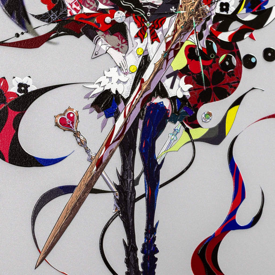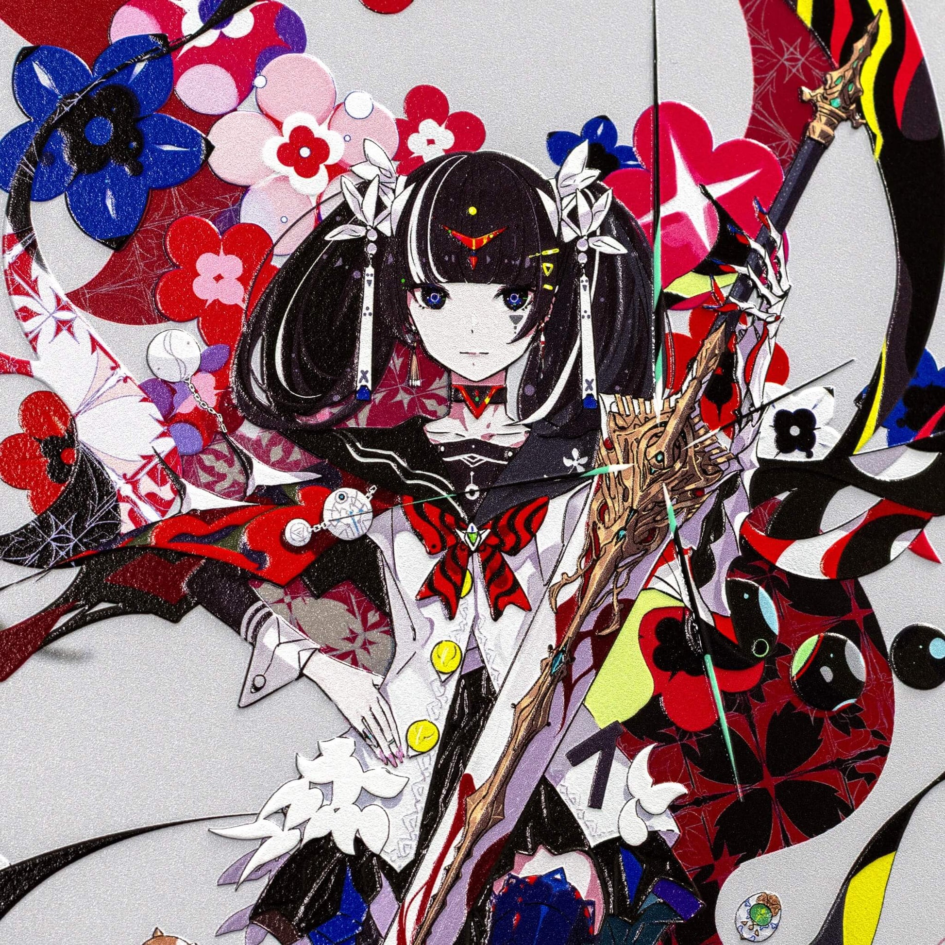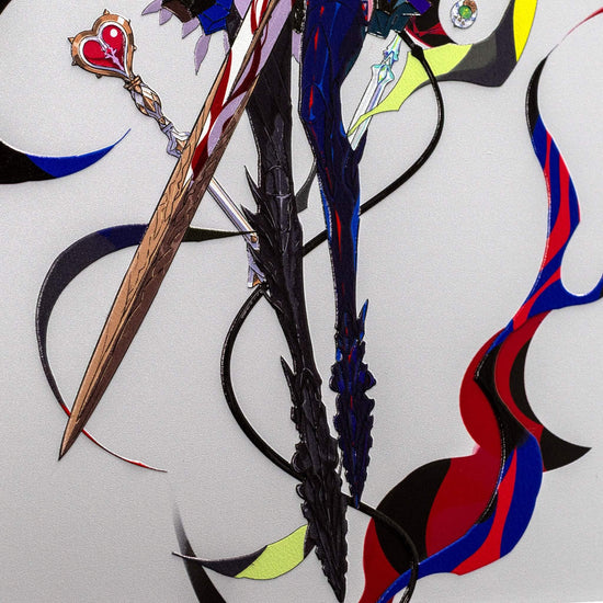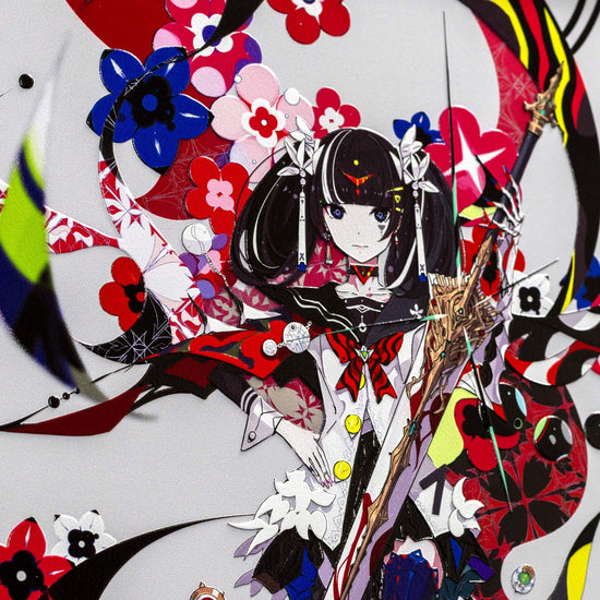 2次元のデジタルアートを、アートピースとして仕上げました。 光の当たり方で見え方が変わり、線や色がより立体的に感じられる表情を楽しめます。