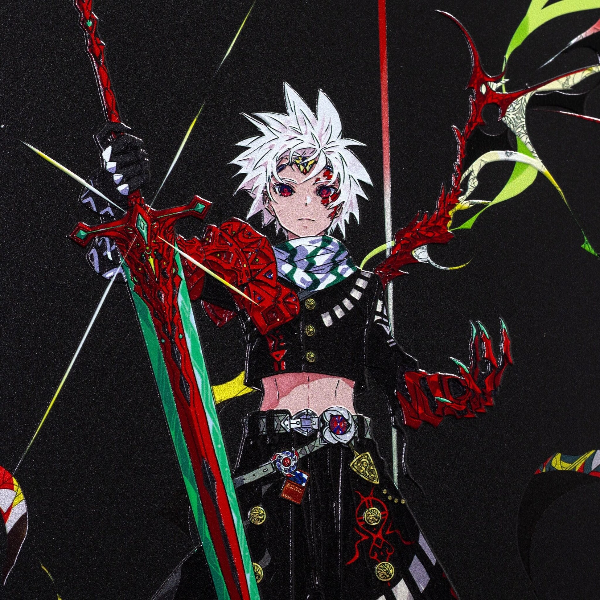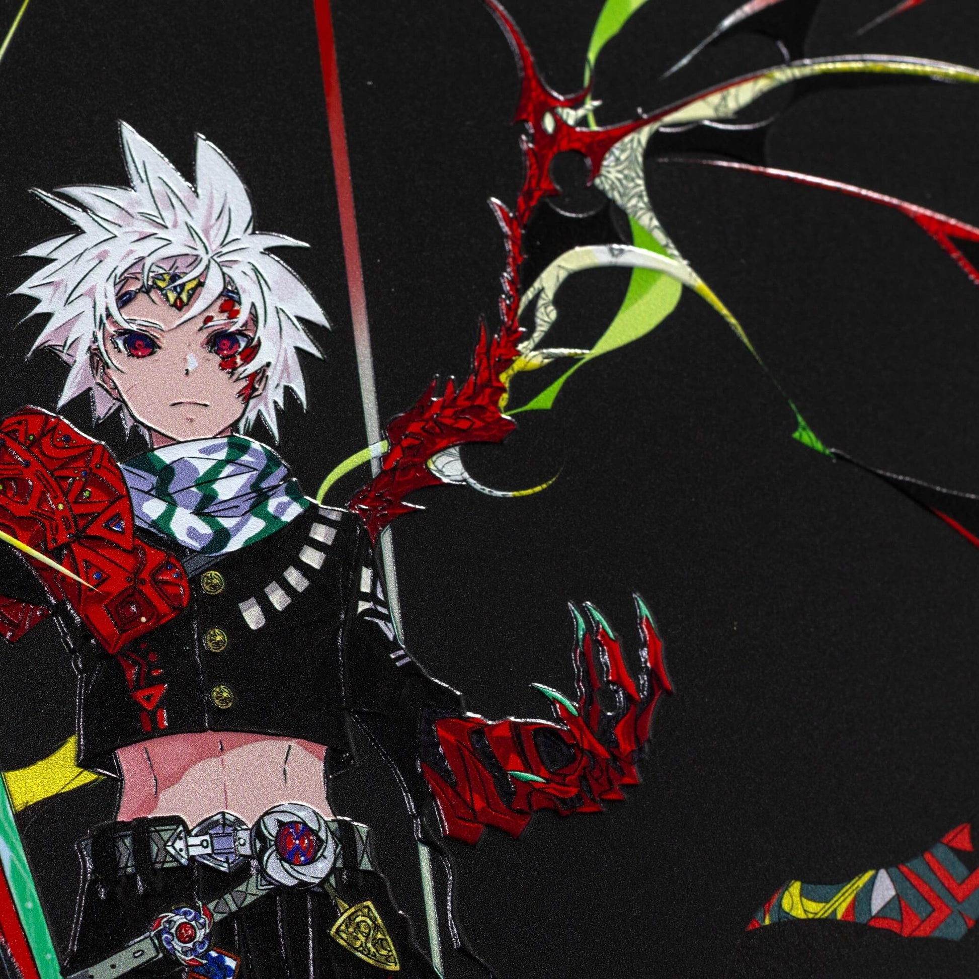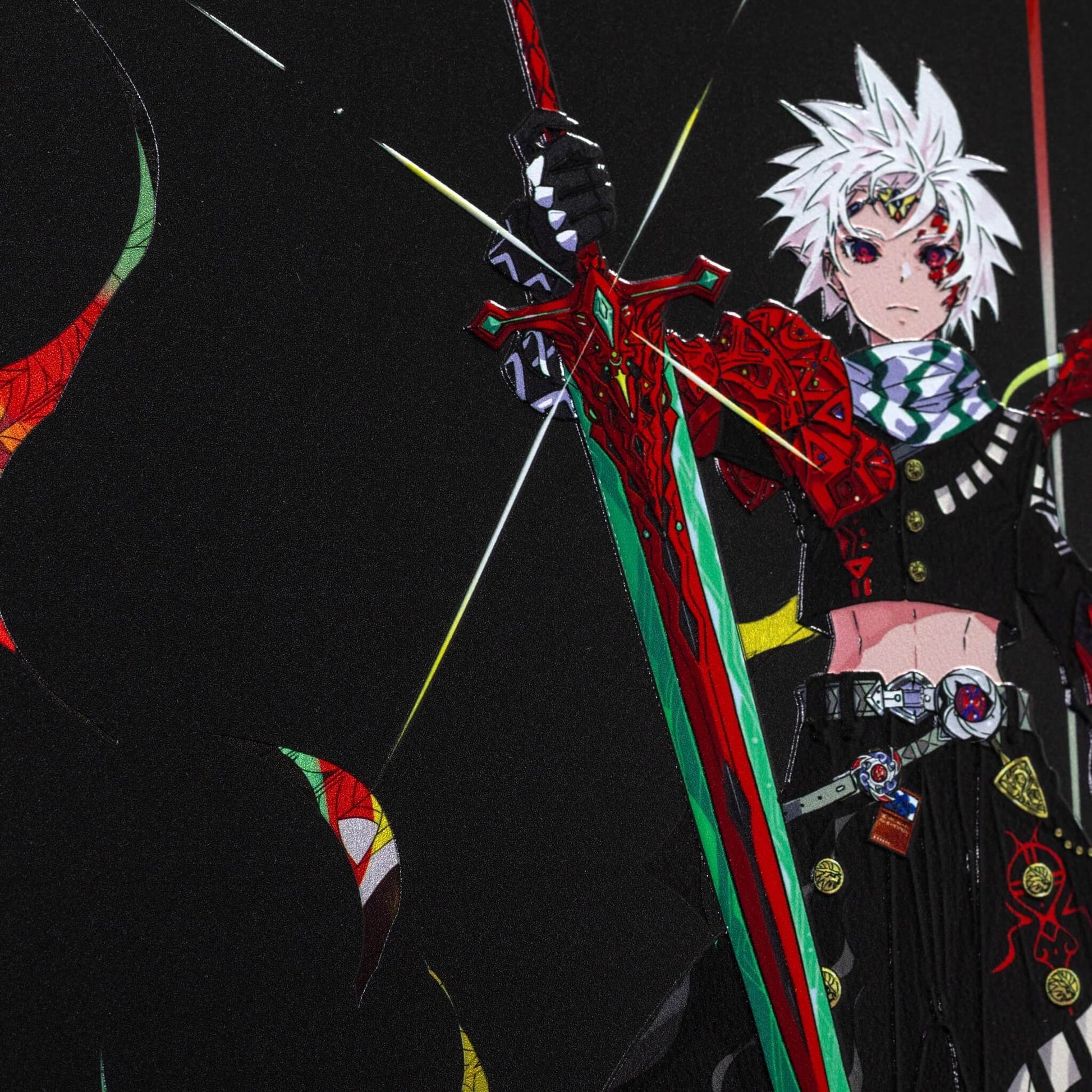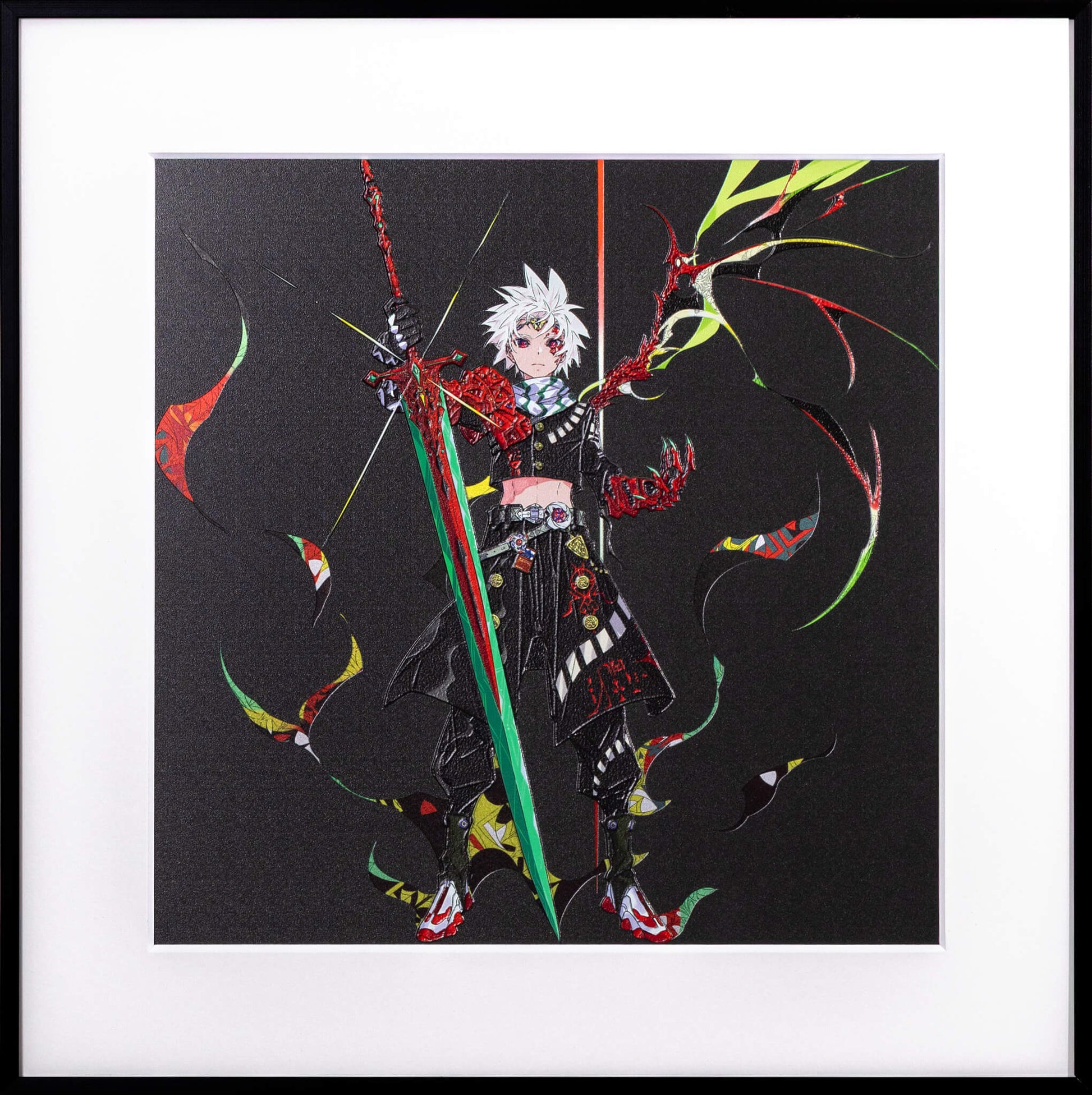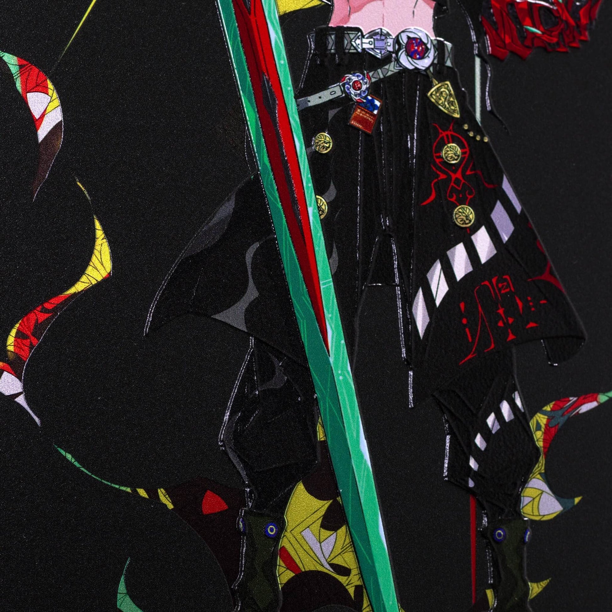 2次元のデジタルアートを、アートピースとして仕上げました。 光の当たり方で見え方が変わり、線や色がより立体的に感じられる表情を楽しめます。