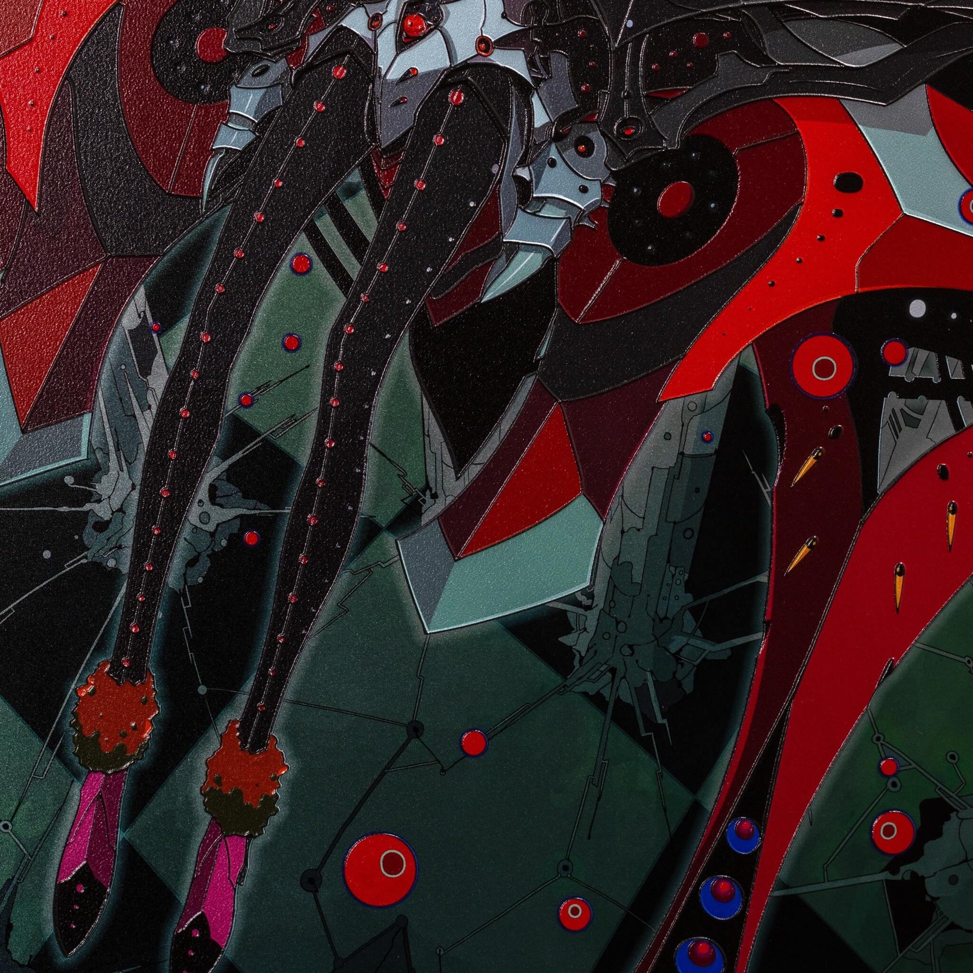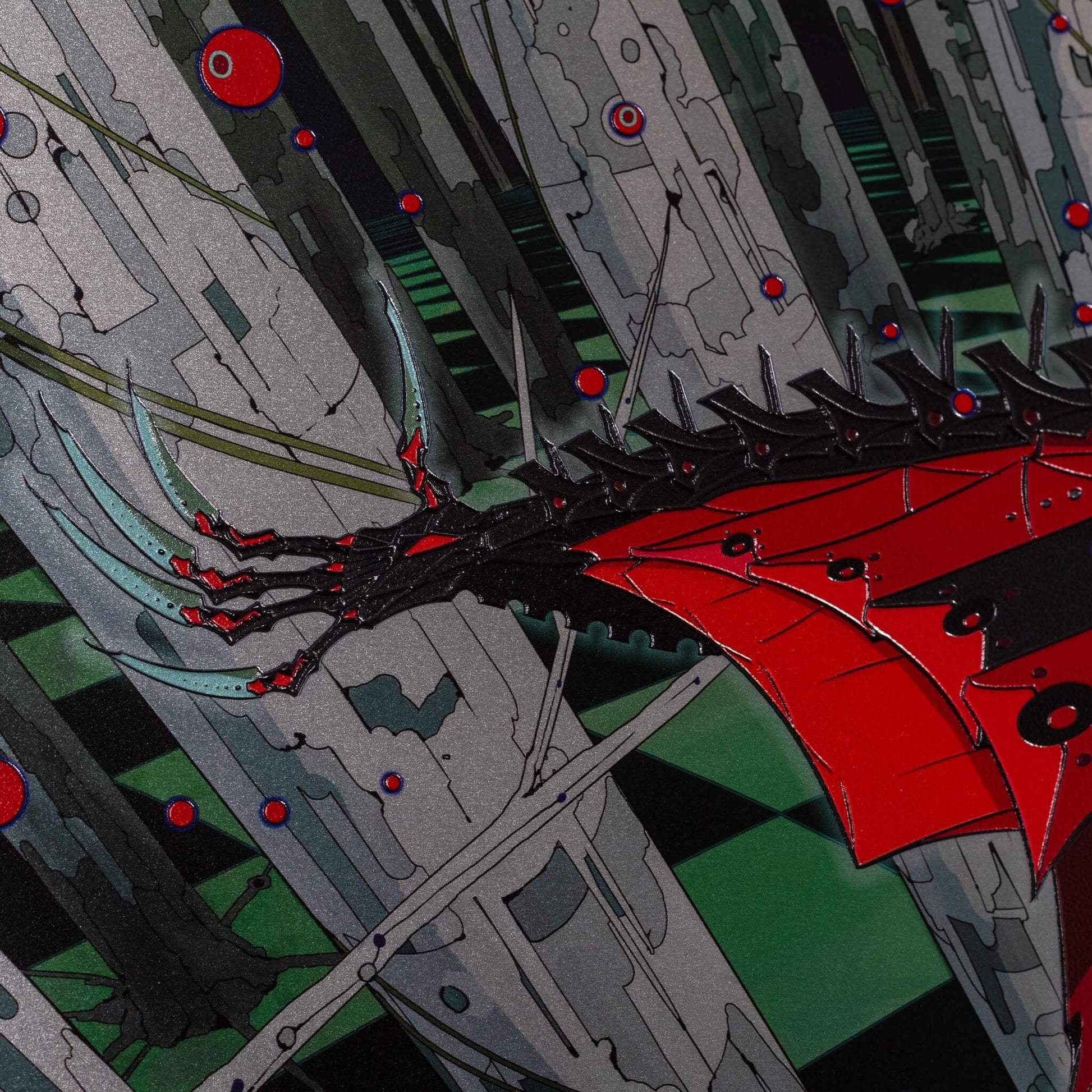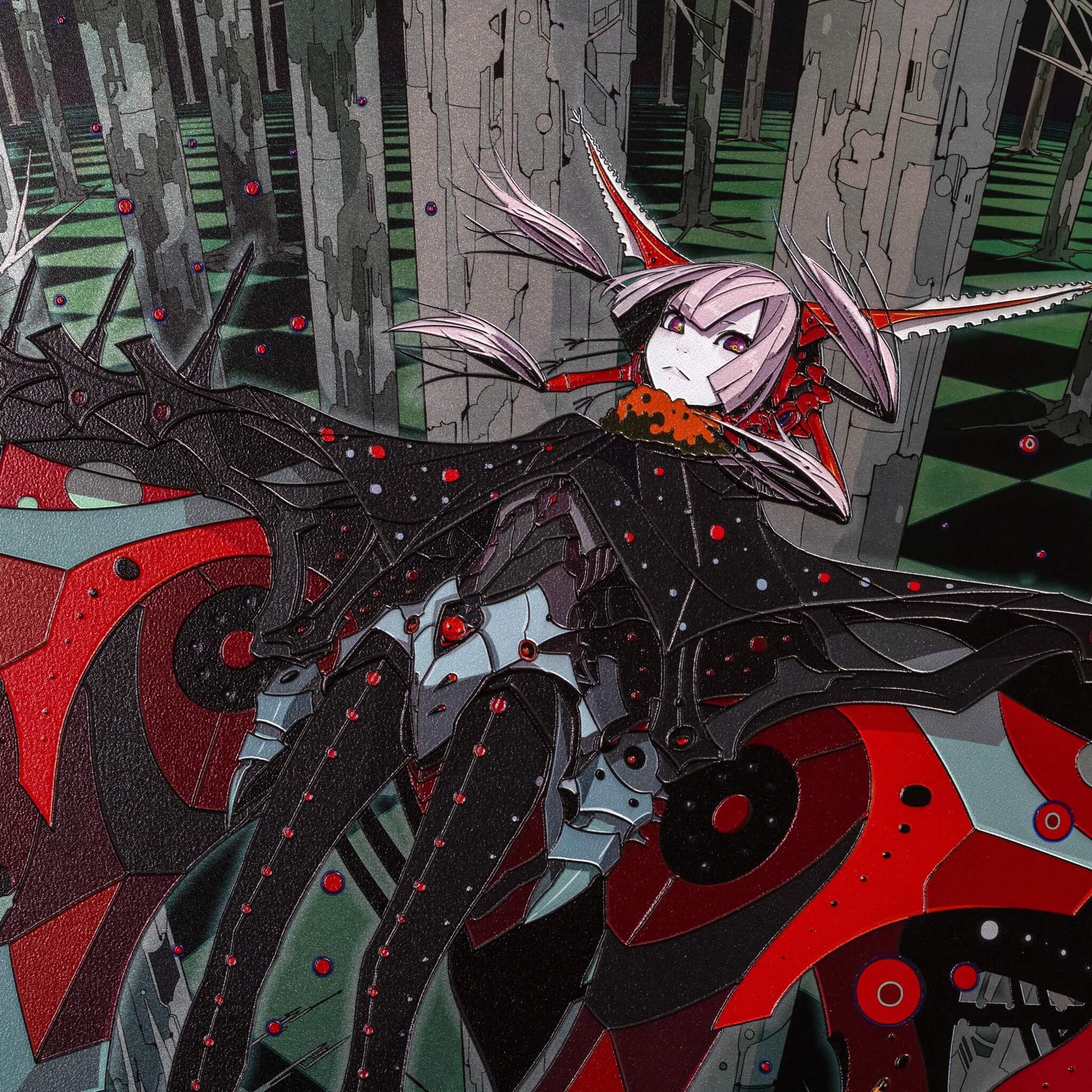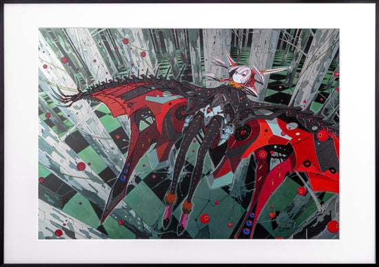 2次元のデジタルアートを、アートピースとして仕上げました。 光の当たり方で見え方が変わり、線や色がより立体的に感じられる表情を楽しめます。
