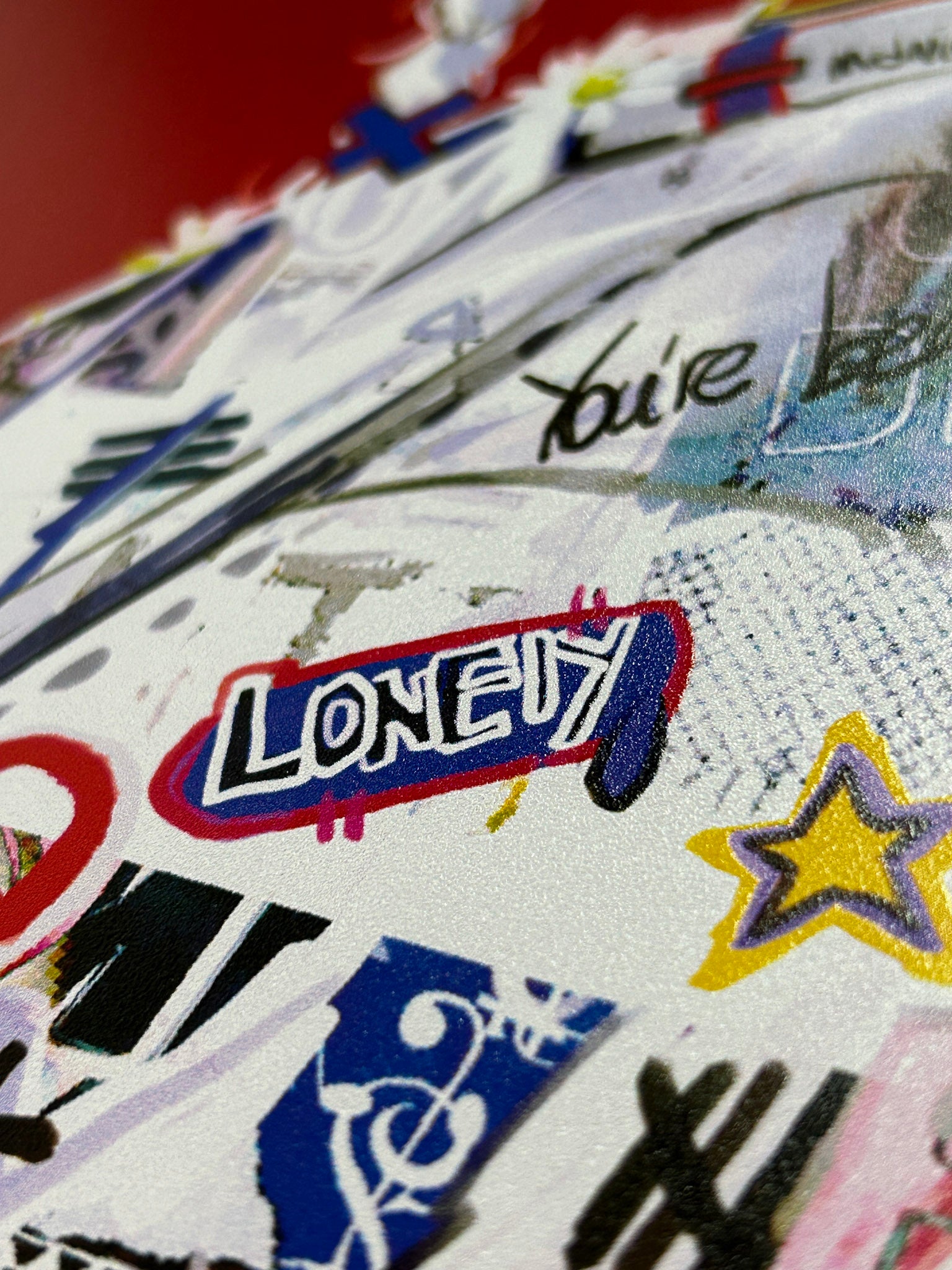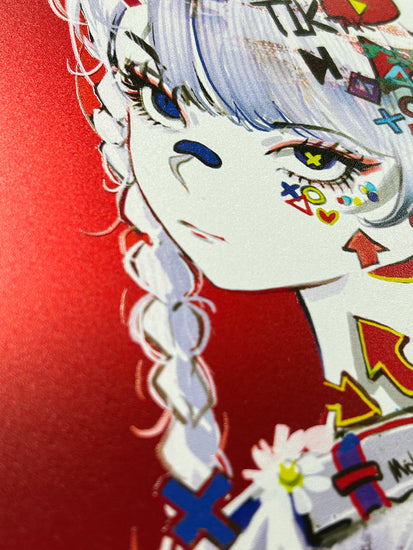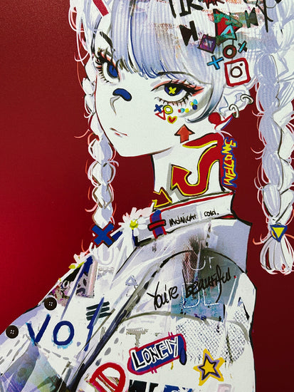 ソーシャルメディアや大衆文化を牽引しているプラットフォームのアイコンを採用し、赤い背景を使ってそれらをより明確に表現したかったのです。ある意味では、自分自身を表現しようとした絵でもあります。ソーシャルメディアに染まりつつも、その中で自分だけの個性を見つけたかった絵だと思います。