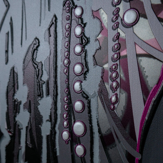 デジタルデータを32層に分割する特殊なデータ設計技術を駆使し、凹凸や色味の繊細な表現を実現しました。これにより、従来のアート作品にはない、深みのある質感と立体感を感じていただけます。