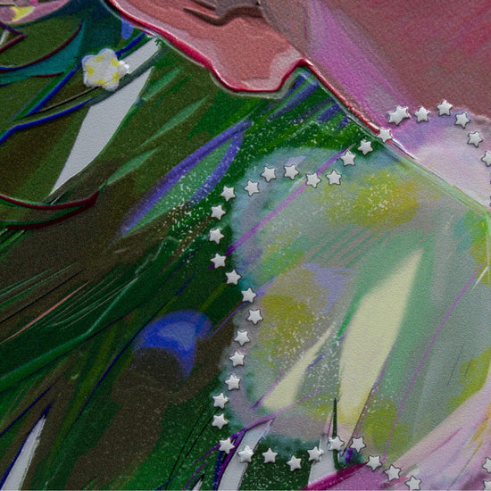 デジタルデータを32層に分割する特殊なデータ設計技術を駆使し、凹凸や色味の繊細な表現を実現しました。これにより、従来のアート作品にはない、深みのある質感と立体感を感じていただけます。