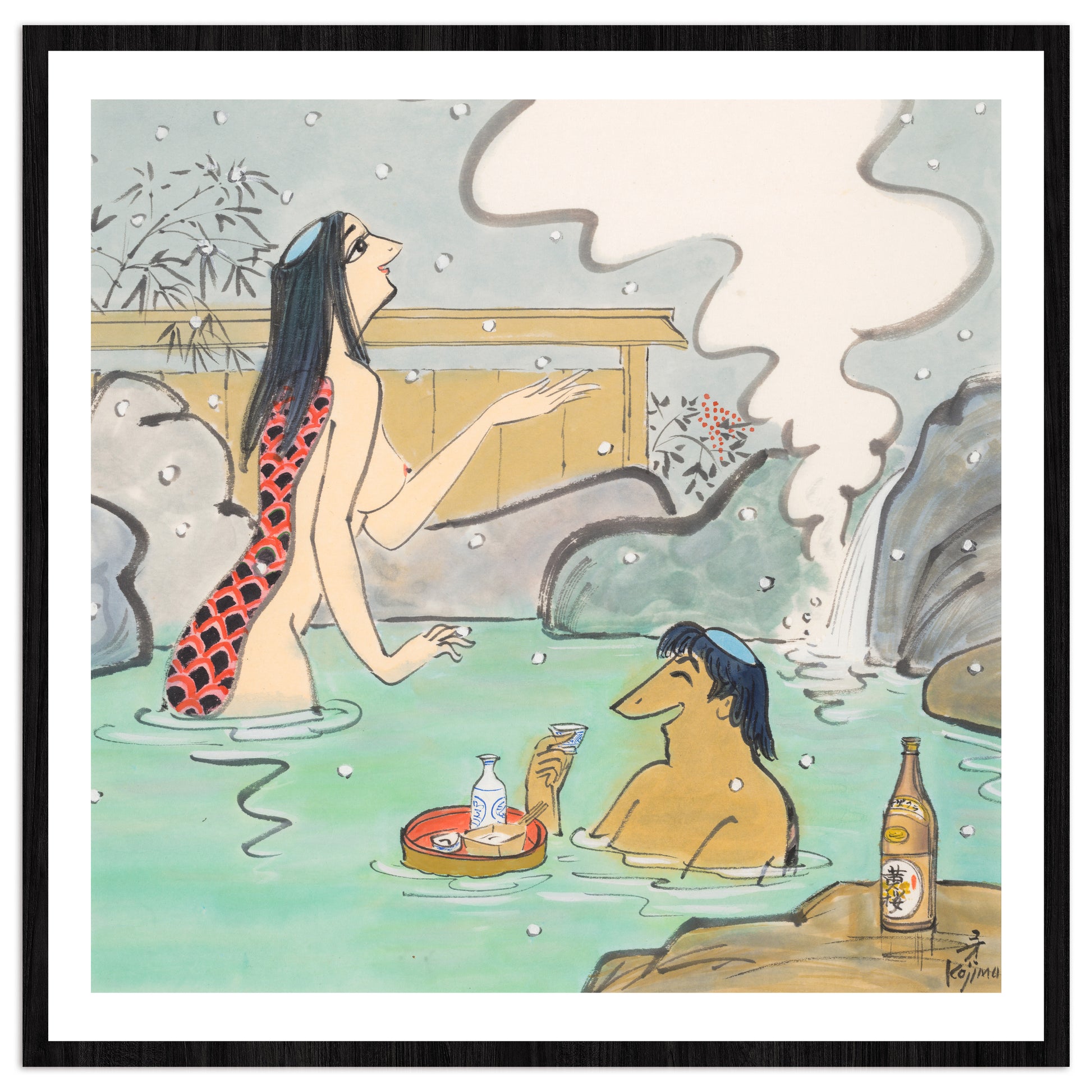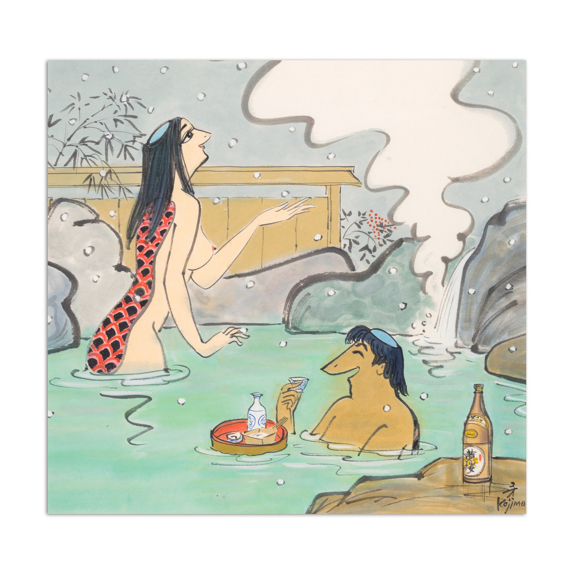 =「漫画界一の流麗な線描」と評された美しくも力強い作品を数多く残された、漫画家界のレジェンド「小島 功」先生の作品をGAAATの技術で新たなアート作品として製作いたしました。 「小島功」先生の代表作でもある”カッパ”はもともと清水崑さんが描かれていたキャラクターの2代目として誕生したものですが、先代のテイストと異なりかなりお色気度の高い「小島カッパ」は今では黄桜のカッパというとこちらを思い浮かべる方が多いのではないでしょうか? 1枚絵ではありますが、世界観は共通しておりどこかストーリー性を感じざるを得ない作品ばかりです。