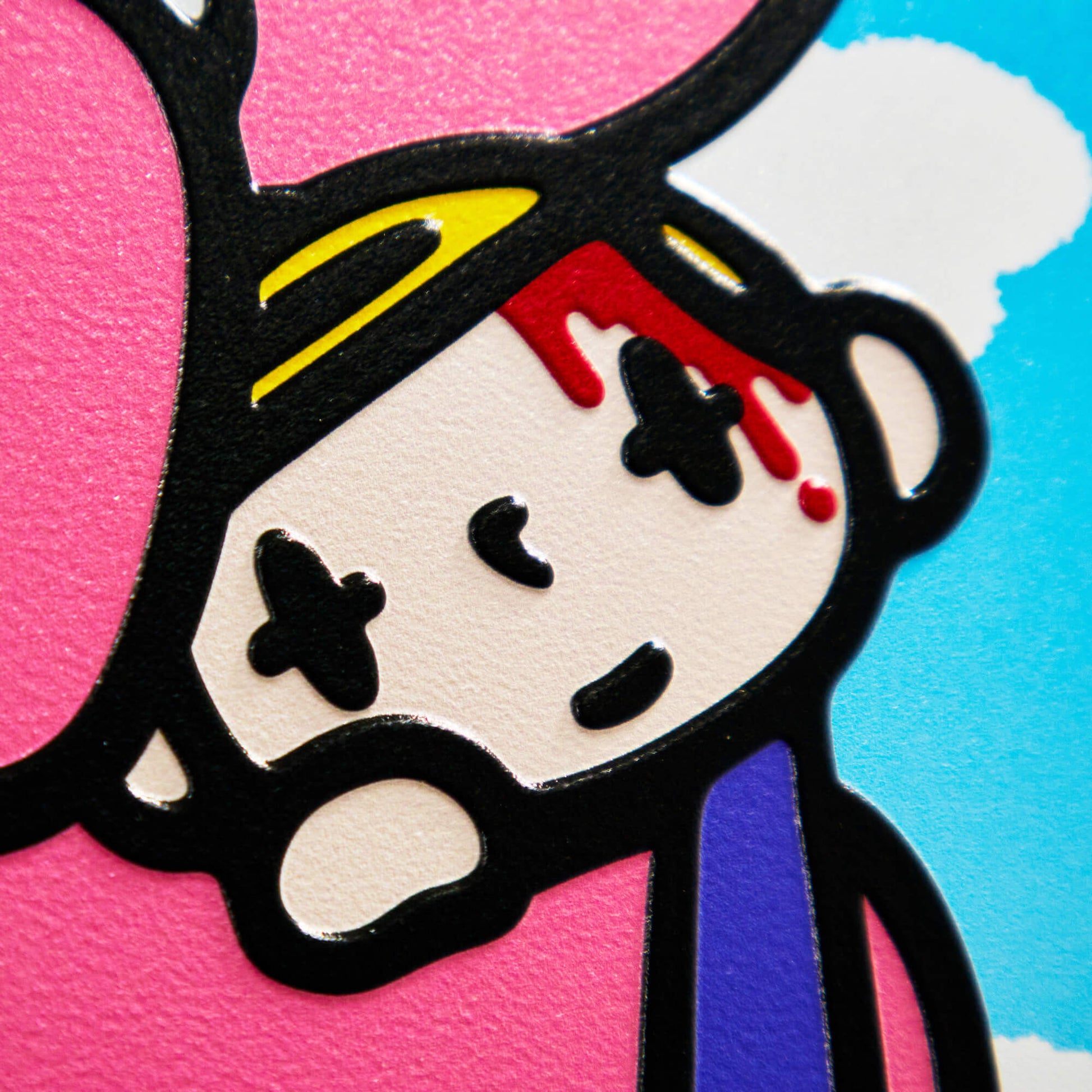 在 Gloomy 的经典艺术图上,我们加入了 Pitty 君和 堺ZAKURO两位角色。描绘了他们在“损伤彩虹”上稍作休息的场景。